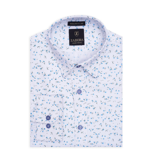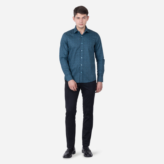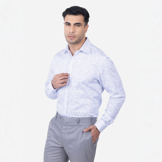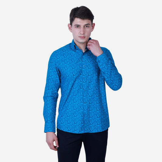 Immerse yourself in nature-inspired style with the Zadora Men's Printed Full Sleeve Shirt from the Forest Blue collection. This sky-blue cotton shirt, adorned with intricate prints, captures the essence of serene blue forests, blending tranquility with sharp design for the modern man.