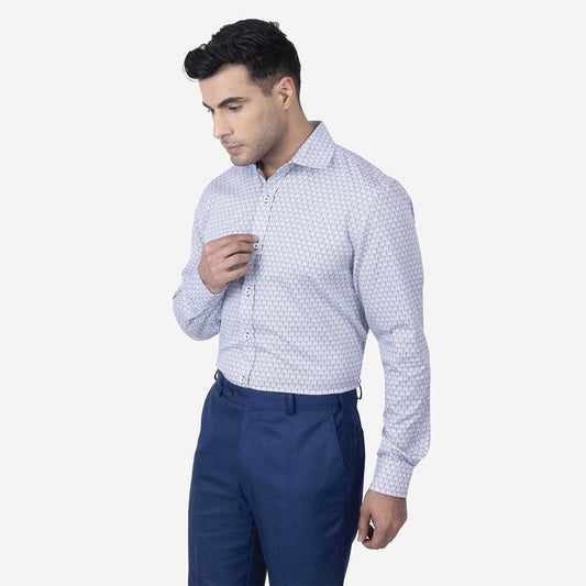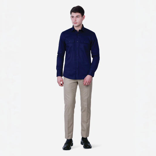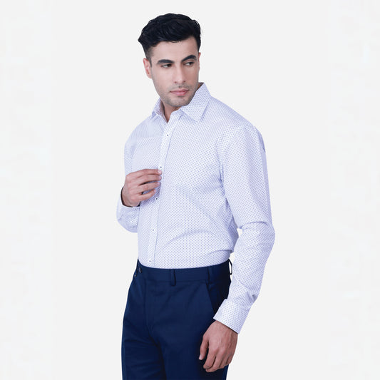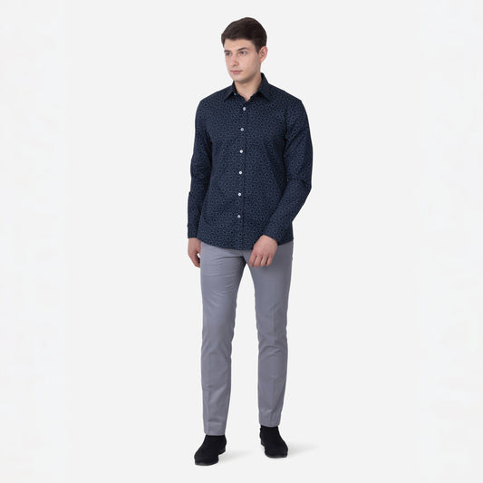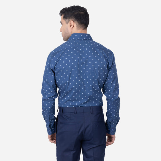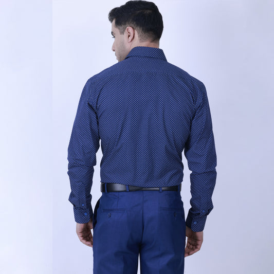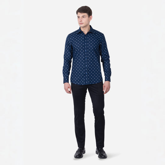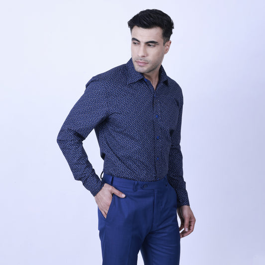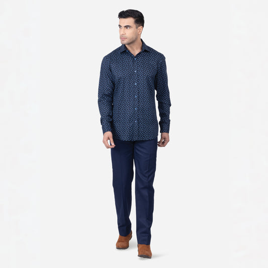Experience timeless style with a modern twist in the Zadora Men's Printed Full Sleeve Shirt from the Navy Blue Collection. This shirt, crafted from soft cotton, combines the richness of navy blue with eye-catching prints, perfect for elevating your everyday wardrobe.