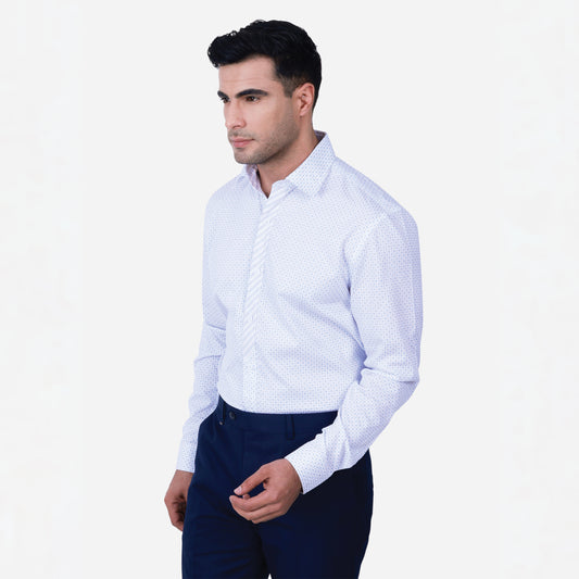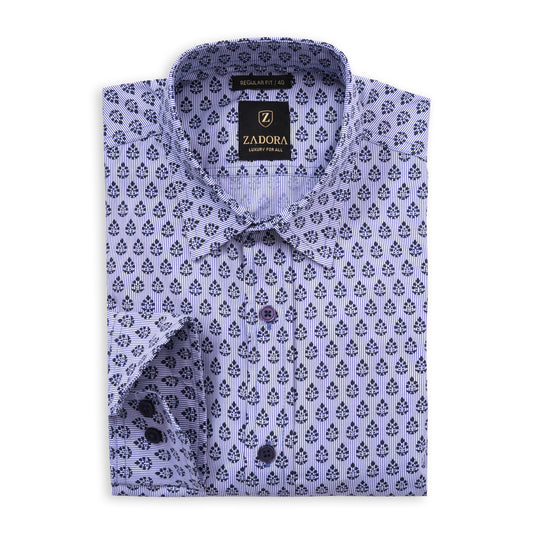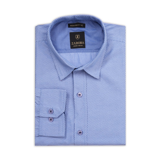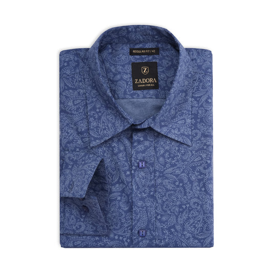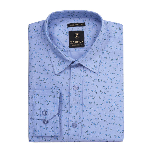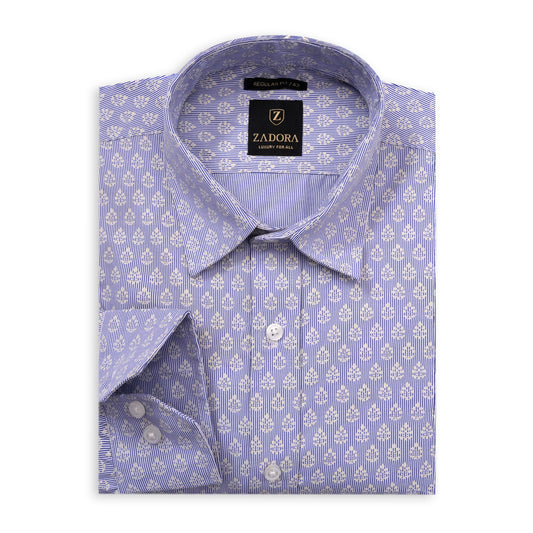 Step into elegance with the Zadora Men's Printed Full Sleeve Shirt, a stunning piece from the Persian Love Affair collection. Inspired by the rich, intricate artistry of Persian design, this sky-blue cotton shirt blends sophistication and comfort, offering a modern take on traditional motifs.
